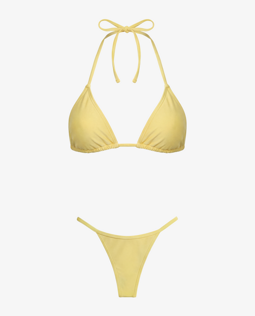 Amarração nas costas para um bronze uniforme, proteção UV, laterais sem elástico e design que valoriza o corpo.